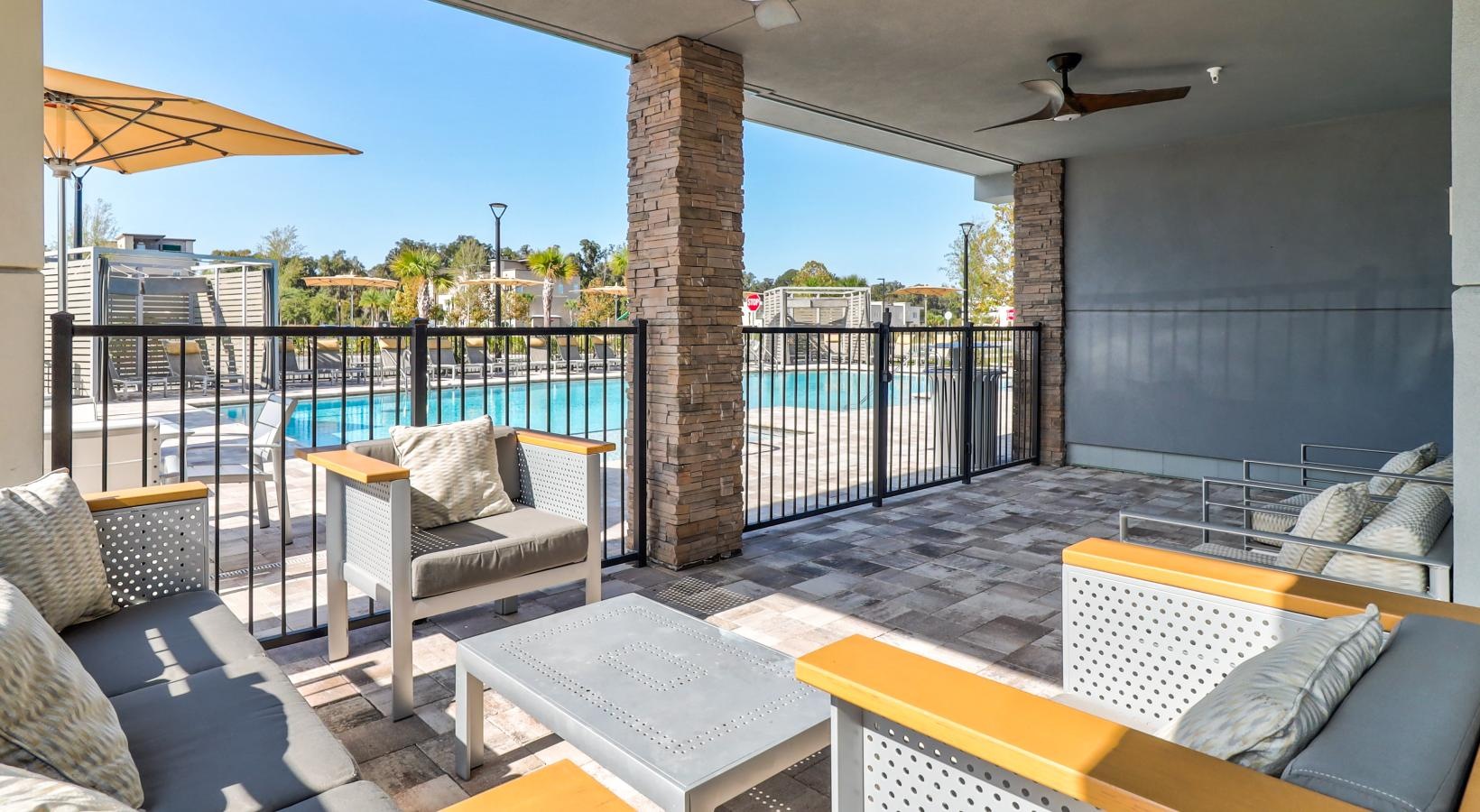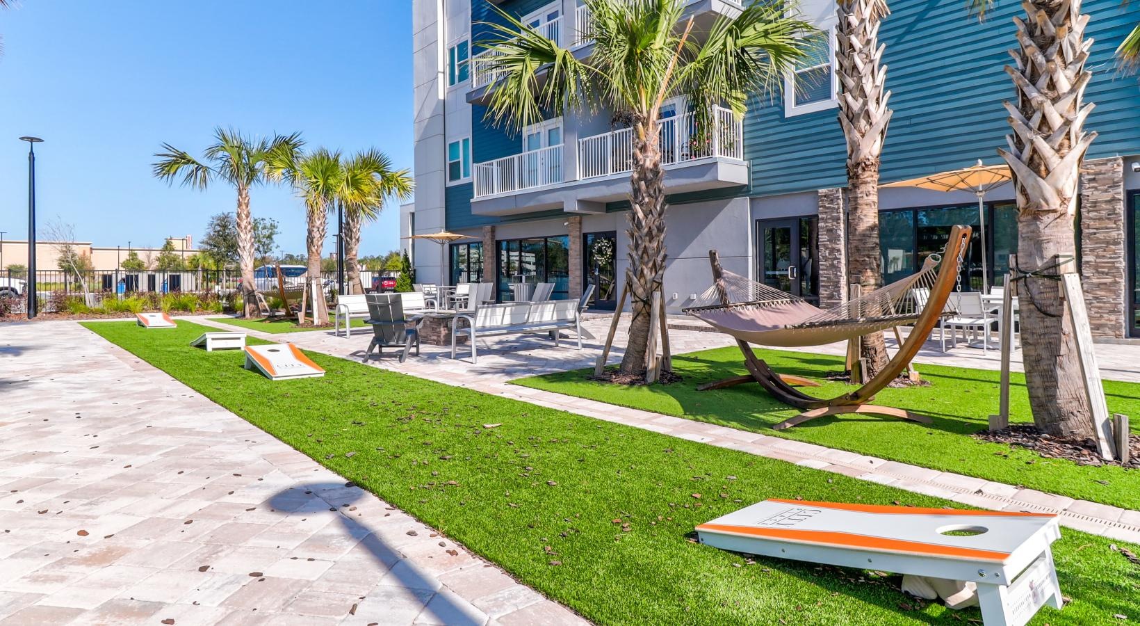 Imagine yourself living at City Place at Celebration Pointe, a thoughtfully designed community in West Gainesville that offers an unparalleled array of amenities to enhance your daily life and provides countless opportunities for relaxation, connection, and enjoyment. Kick off your morning with a complimentary drink from our Starbucks Coffee Bar, and hit the 24-hour fitness center for a cardio and strength training session. Outdoor lovers can take their workout outside to the 6-mile Archer Braid Trail connected to the community. Our multi-media conference room with high-speed internet is the perfect spot to work from home, and when you finish up, head outside to the sparkling swimming pool and sundeck. Even more outdoor lounge space awaits at the sun terrace, where you can relax in a hammock or play a round of cornhole with friends. In the evening, the social lounge offers a billiards table and plenty of space to gather before retreating to the comfort of your Gainesville apartment.